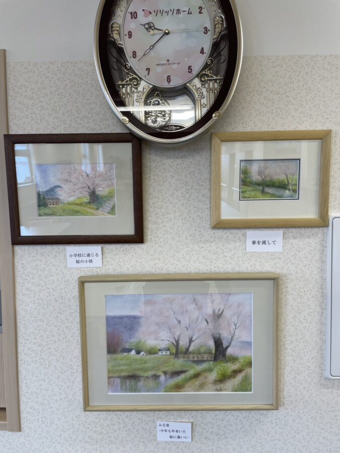 ご入居者様が描いた作品をホーム内に飾らせていただきました!